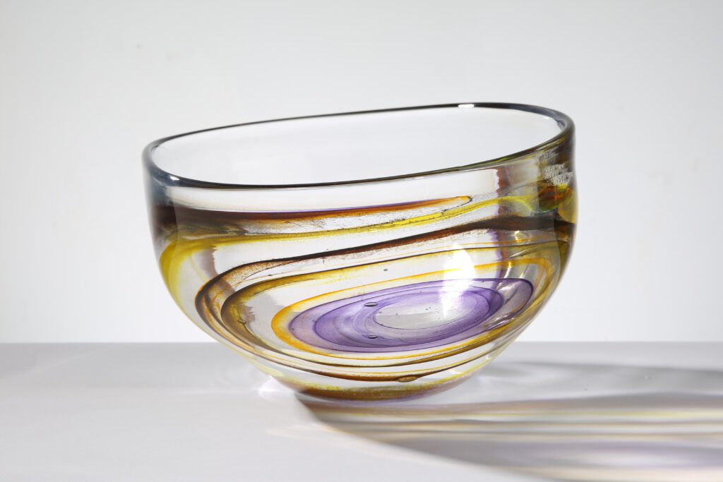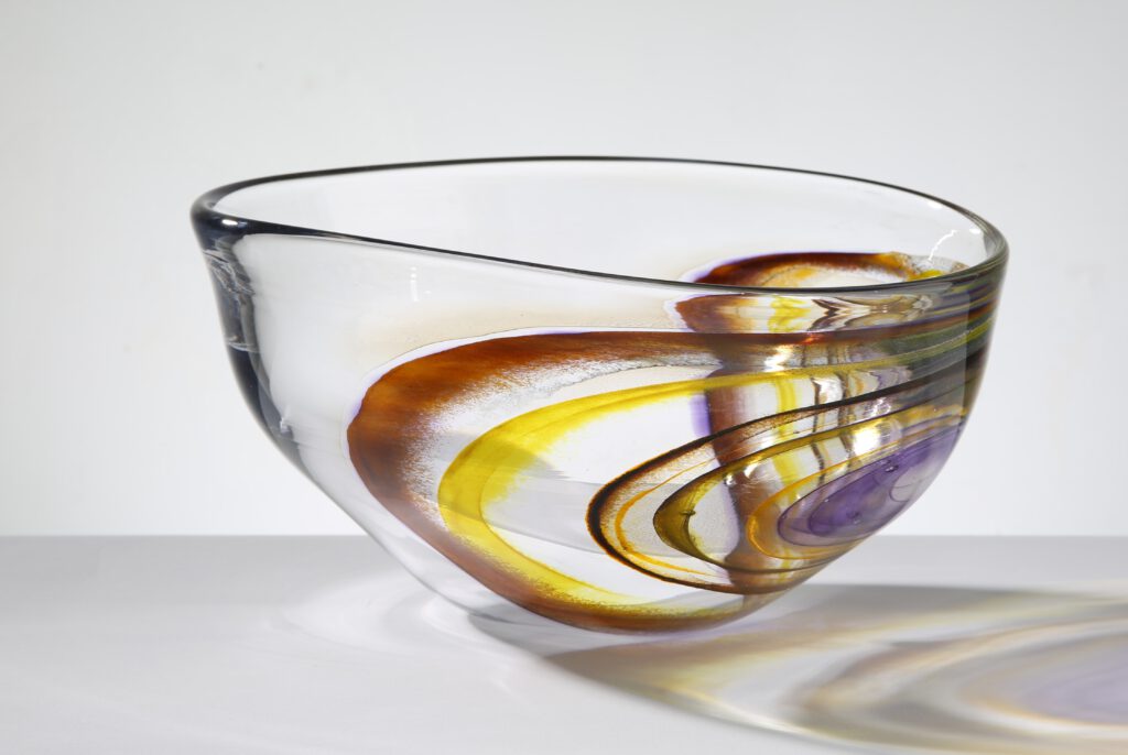 Coloured Disk – Bowl: 19,5x34x27,5 cm, blown glass, closed roll-up, 2023