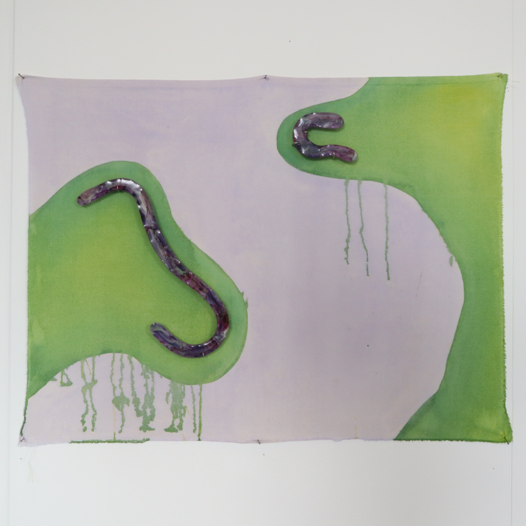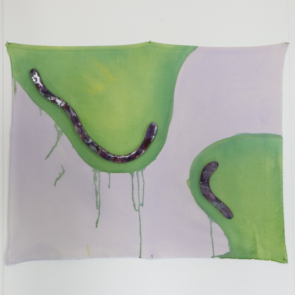 Purple and Pink 3-4: 100×150 cm, acryl, inkt en glas op canvas, 2025