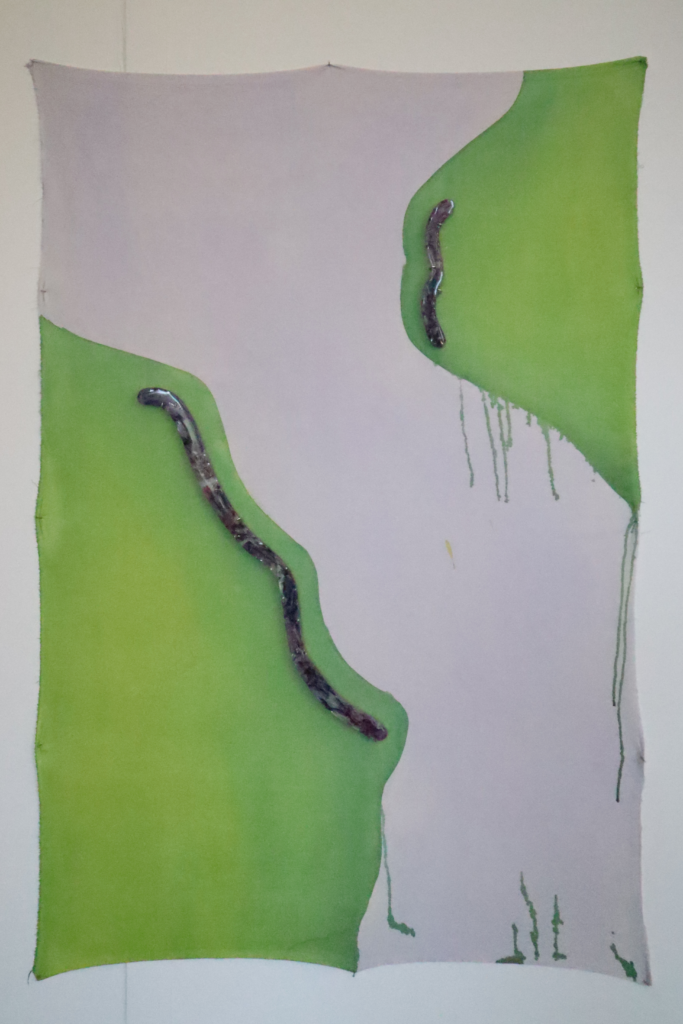 Purple and Pink 3-4: 100×150 cm, acrylic, ink and glass on canvas, 2025